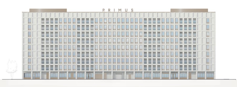 Planbeskrivningen för Primusområdet efterfrågar en gestaltning som ger intryck av enhetlighet och beständighet. Bland flera nämnda material har betong har valts som primärt fasadmateiral på Primus 2. I detaljplanens gestaltningsbilaga benämns betong som om ett material av solid karaktär, vars egenskaper bidrar till att förmedla platsens industriella historia samtidigt som materialet kan bearbetas och gestaltas med precision och beständighet.